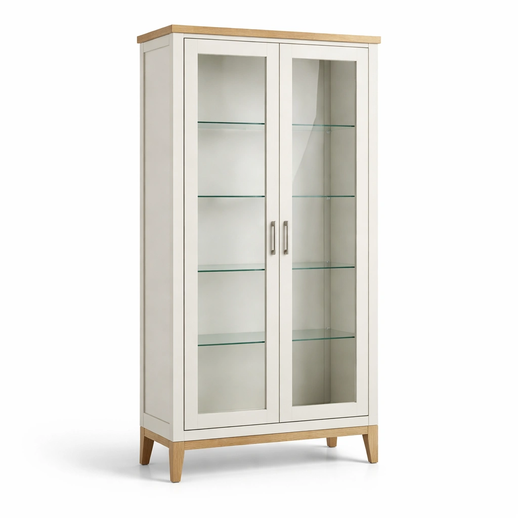 Vitrine Massivholz Gehärtetes Glas Weiß Eiche